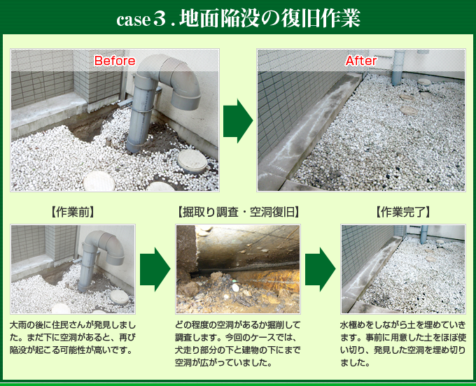 ・ 大雨で建物際の地面が陥没した