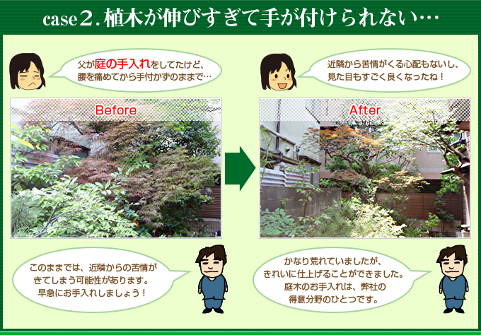また、植木の面倒な手入れは単発受注で庭木1本からのご依頼が可能です。